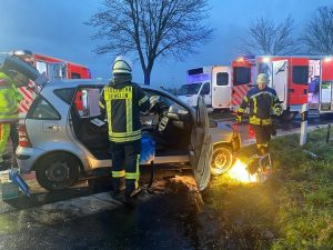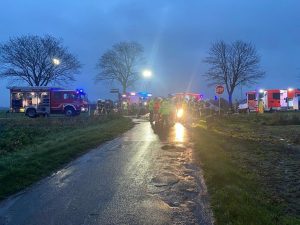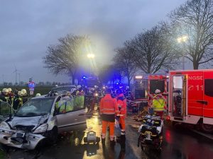 Des Weiteren sicherten die Einsatzkräfte der Feuerwehr die Einsatzstelle ab und unterstützten die Kollegen vom Rettungsdienst bei der Patientenversorgung. Im weiteren Verlauf wurde der Landeplatz für den Rettungshubschrauber eingerichtet und an den Unfallfahrzeugen die Batterien abgeklemmt sowie ausgelaufene Betriebsstoffe abgestreut. Zur Zeit wird die Unfallstelle für das Unfallaufnahmeteam der Polizei ausgeleuchtet.