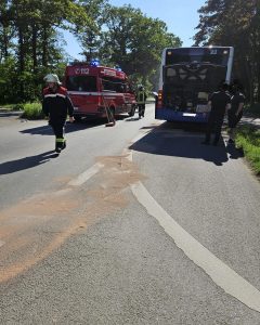 Die Einsatzkräfte der Feuerwehr sicherten die Einsatzstelle ab, die weiteren auslaufenden Betriebsmittel wurden aufgefangen. Danach wurde die verunreinigte Fahrbahn mit einem Ölbindemittel auf ökologischer Basis abgestreut, nach der Einwirkzeit wieder aufgenommen und der Entsorgung zugeführt.