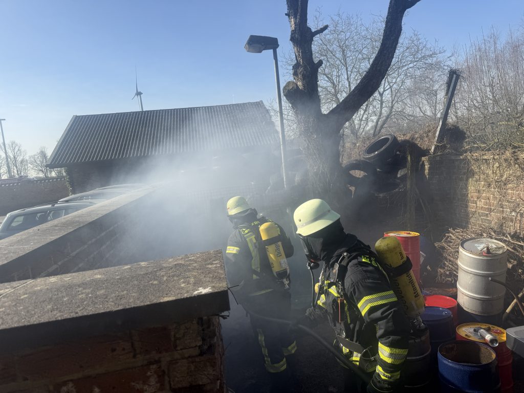 Am Freitagvormittag wurden die Löschzüge Sevelen und Issum zu einem Gebäudebrand in einem Autohaus an der Rheurdter Straße alarmiert. Aus bisher unbekannter Ursache gerieten mehrere Autoreifen, die sich außerhalb des Gebäudes befanden, sowie Kartonagen in einem Nebenraum, in Brand. Ein Mitarbeiter hatte bereits mit einem Gartenschlauch erste Löschmaßnahmen eingeleitet. Im Verlauf des Einsatzes wurde er vom mitalarmierten Rettungsdienst auf eine mögliche Rauchgasintoxikation untersucht. Die Feuerwehrkräfte, die unter Atemschutz mit einem C-Rohr vorgingen, konnten den Brand schnell unter Kontrolle bringen und das Feuer löschen. Insgesamt waren 34 Einsatzkräfte der Freiwilligen Feuerwehr mit 7 Feuerwehrfahrzeugen, sowie die Kollegen vom Rettungsdienst und der Polizei, etwa eine Stunde im Einsatz.