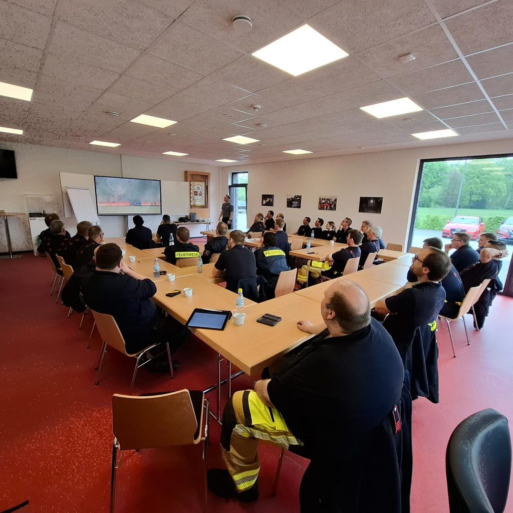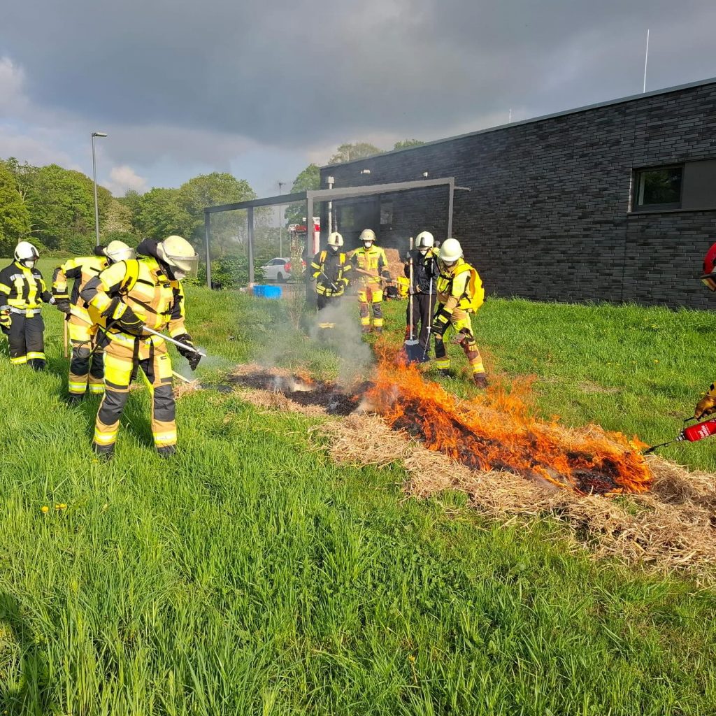 Gestern und heute fand bei der Feuerwehr Issum ein Seminar zum Thema Vegetationsbrandbekämpfung statt. 54 Feuerwehrangehörige der Feuerwehren Issum, Rheurdt, Kerken, Geldern und Kamp-Lintfort wurden durch drei Dozenten des Waldbrandteam e.V. geschult. Behandelt wurden Inhalte in Theorie und Praxis zu den Bereichen Grundlagen, Sicherheit, Taktik, Umgang mit Handwerkzeugen und Schlauchverlegetechniken.