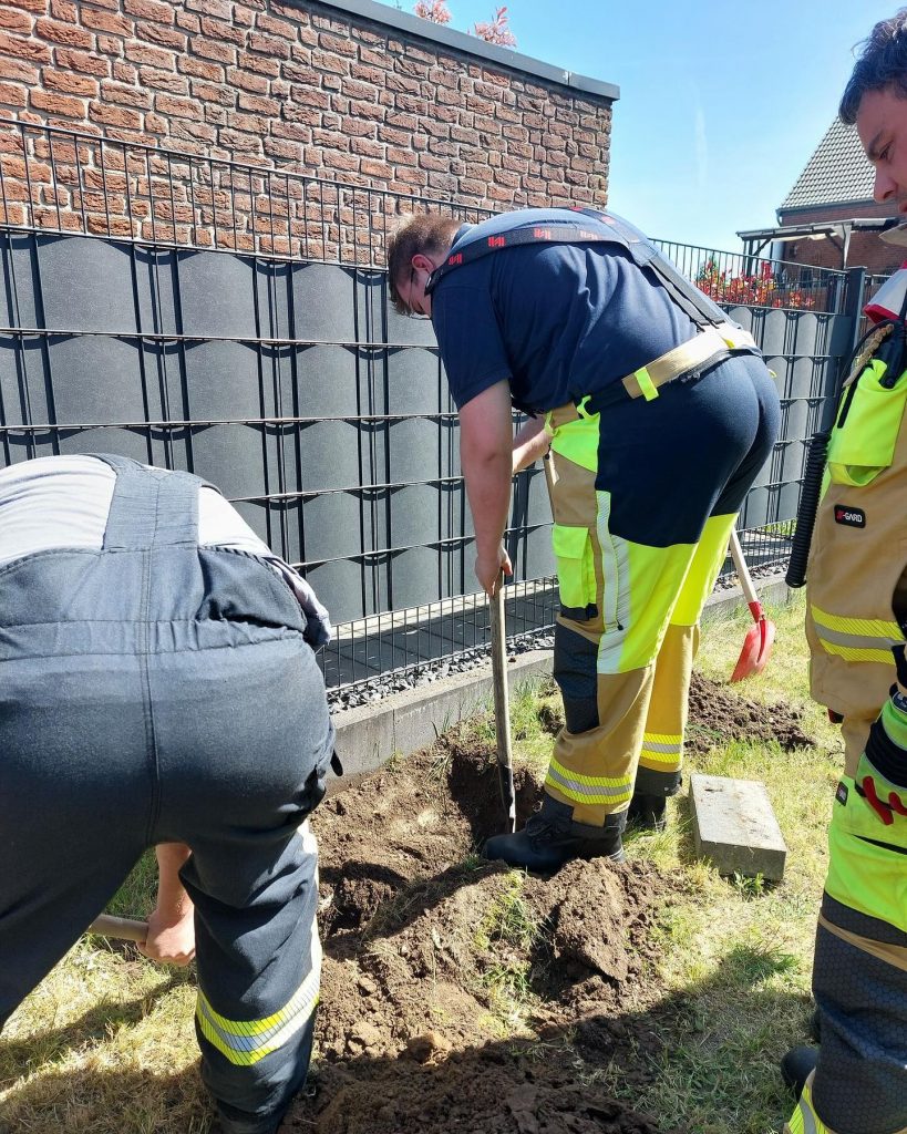Am frühen Nachmittag wurden die Angehörigen der Freiwilligen Feuerwehr zu einer Tierrettung an der Gelderner Straße alarmiert. Eine Kaninchenbesitzerin hatte ihr Tier seit fast zwei Tagen nicht mehr gesehen. Es stellte sich heraus, dass „Meister Lampe“ unter dem Freilauf einen Tunnel gegraben hatte und vermutlich darin steckengeblieben war.