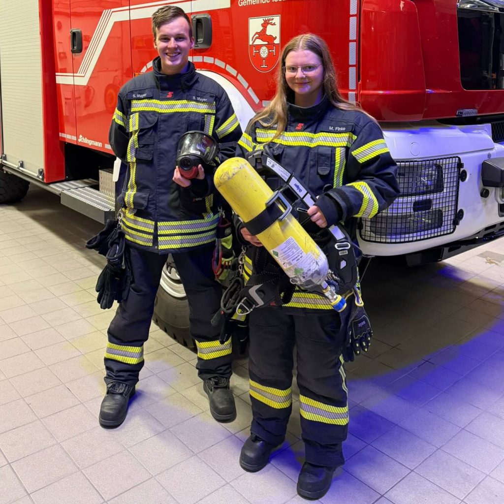 Die beiden haben gestern (13.05.2025) mit Erfolg die Prüfung zum Atemschutzgeräteträger bestanden – eine der wichtigsten und herausforderndsten Stationen in der Feuerwehr-Ausbildung.