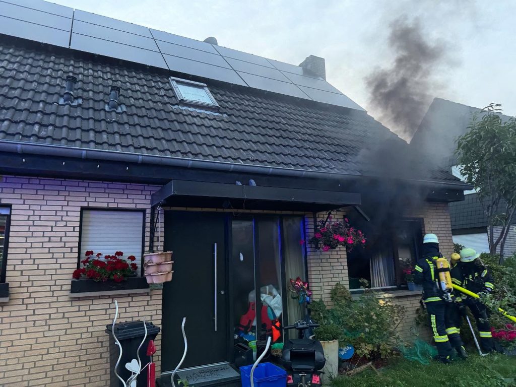 Am Mittwochabend wurden die Löschzüge Sevelen und Issum der Gesamtwehr Issum zu einem Wohnungsbrand auf der Schumannstraße alarmiert. In dem betroffenen Einfamilienhaus sind aus bisher nicht ermittelter Ursache Wohnzimmermöbel und Unterhaltungselektronikgeräte in Brand geraten. Zu diesem Zeitpunkt befanden sich die Bewohner des Hauses im Urlaub, was die Zugangs-Situation zusätzlich erschwerte. Um schnellstmöglich zur Brandstelle vorrücken zu können stiegen die unter Atemschutz vorgehenden Trupps in ein Fenster im Erdgeschoss ein.