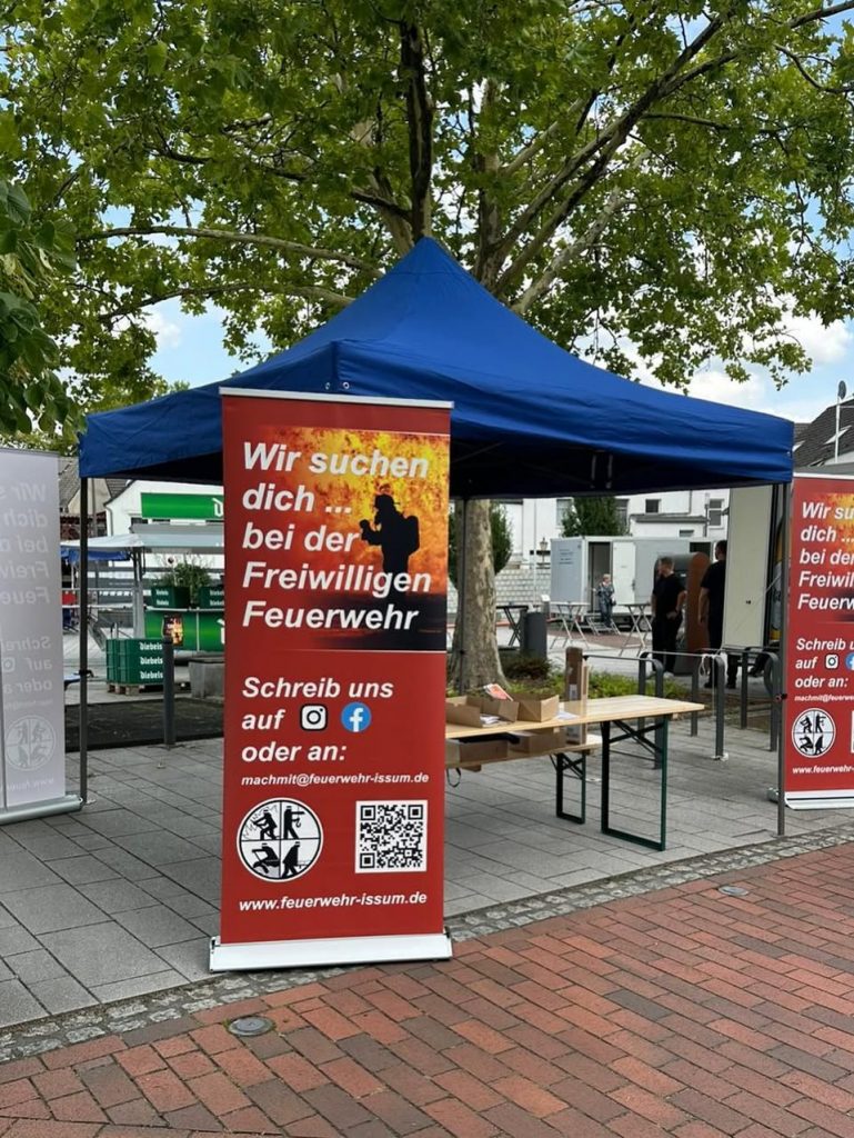 Der Förderverein Freiwilligen Feuerwehr Issum – Löschzug Issum – und der Löschzug Issum selbst sind heute auf dem Feierabendmarkt vertreten.