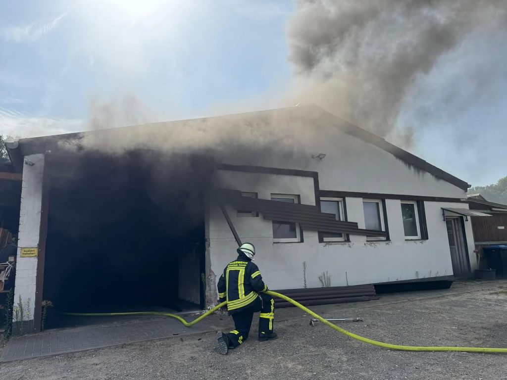 Am heutigen Vormittag wurden die Einsatzkräfte der Freiwilligen Feuerwehr Issum gegen 10:45 Uhr mit dem Stichwort „Feuer mittel – Kleingebäude“ zu einem Reiterhof an der Rheurdter Straße in Oermten alarmiert. Bereits beim Eintreffen der ersten Kräfte war eine starke Rauchentwicklung aus einer Halle sichtbar.