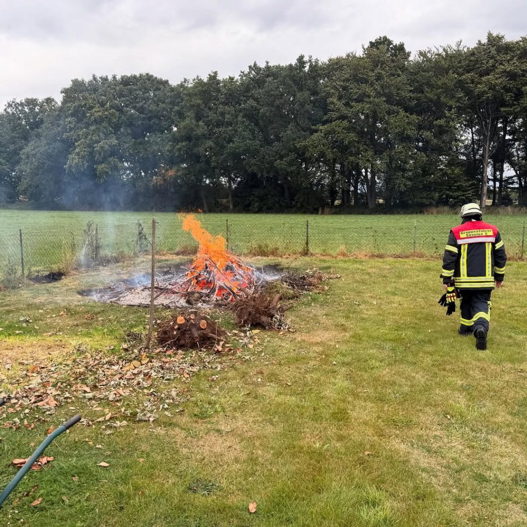 Beim Eintreffen an der Einsatzstelle auf der Von-Eichendorff-Straße stellte sich heraus, dass es sich um ein nicht genehmigtes Nutzfeuer handelte, es wurden Gartenabfälle verbrannt. Auf Anweisung des Einsatzleiters wurde der Eigentümer verpflichtet das Feuer abzulöschen.
